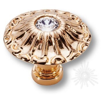 Ручка кнопка 15.304.24SWA19, материал Замак, отделка Золото Кристаллы Swarovski, 22*d=24 мм
